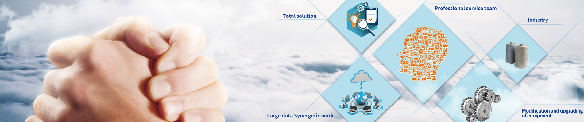 Mule spinning elf platform is one of You Lian e+ series products, it is an internet based intelligent platform of monitoring and management on mule spinning machine, it works by install an intelligent gateway system on the mule spinning machine, and upload all kinds of data (mainly obtained from the sensor) from the device to the cloud server, though data processing, authorized members can get real-time information from PC and App terminal to monitor and manage the device, and fully comprehend the machine’s usage parameters, production, operation, failure and so on.