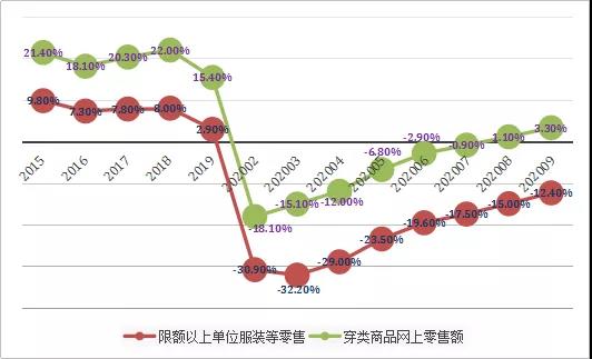 圖1 限額以上單位紡織服裝零售額和穿類商品