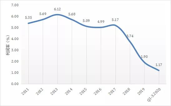 截至三季度,規上毛紡企業累計營業收入923億元,同比跌幅為8%,在總體收入規模上跌幅已經大大收窄。但是,規上企業的虧損面依然高達41%,平均利潤率僅為1.2%,均較紡織業的平均水平有不小差距。整體來看,今年多數企業在經營上以維系生產和拓展市場為主,企業的利潤空間受到擠壓。可以看到,目前企業的利潤情況,已遠低于三年前的水平(見圖5)。