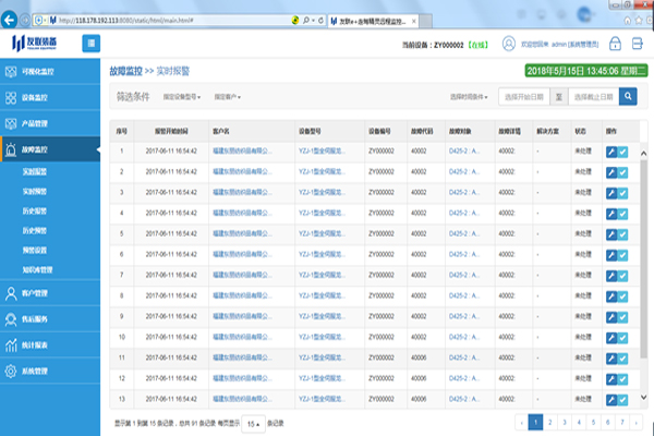 通過平臺,建立設備運營狀態數據庫:設備發生的故障及解決方案都會記錄在庫。