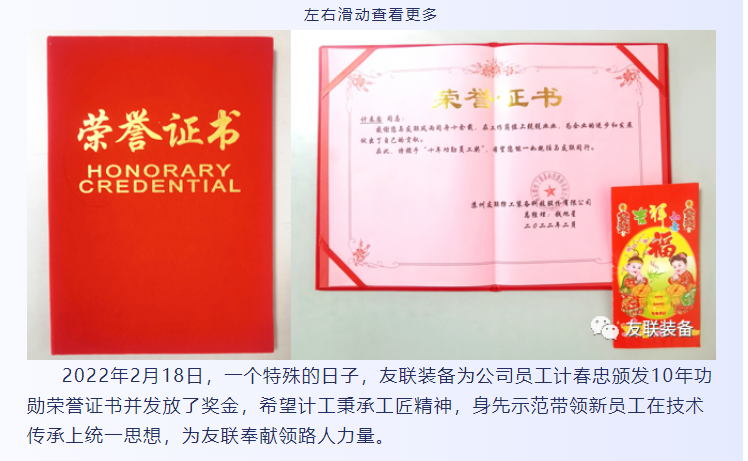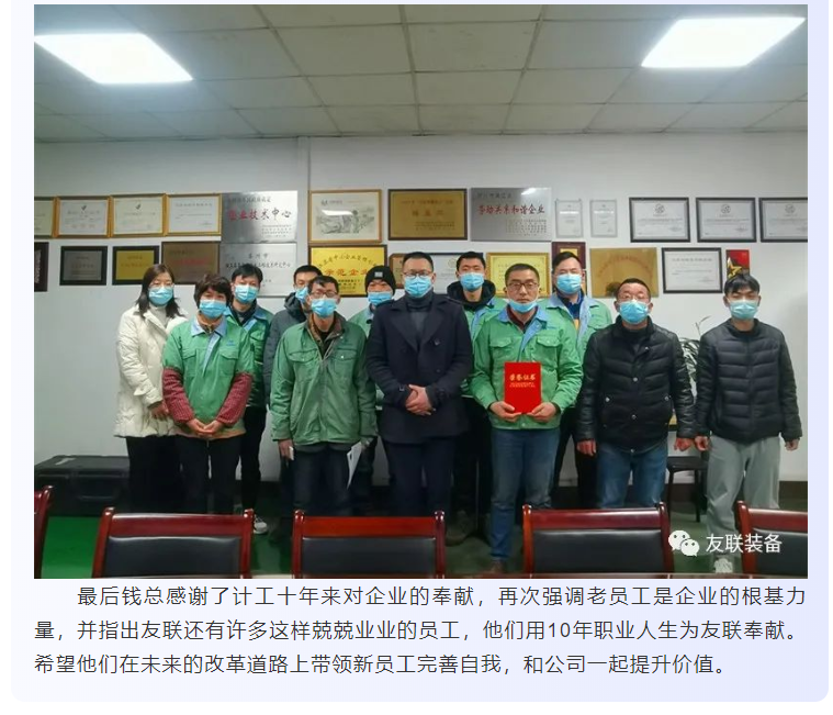 十年相伴 一路同行 | 友聯裝備為“10年員工”頒發功勛榮譽獎